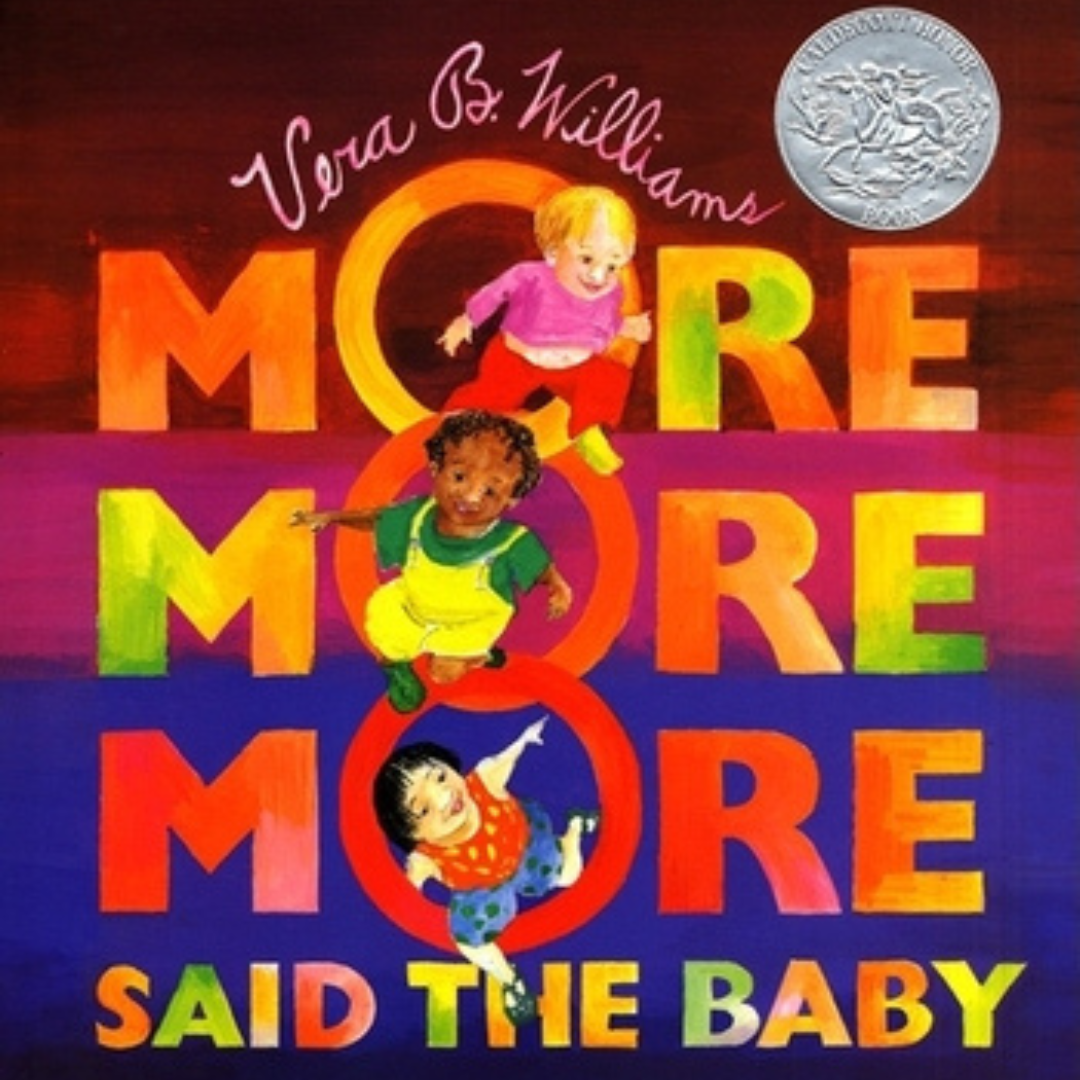 The love theme with math continues with More More More Said the Baby by Vera William, a Caldecott Honor book. It brings smiles to children’s faces as they chant “more more more” when listening to the three parallel stories of Little Guy, Little Pumpkin, and Little Bird. This colorfully illustrated book with its repetitive “catch and caught” sequences spark opportunities for children to be active listeners.