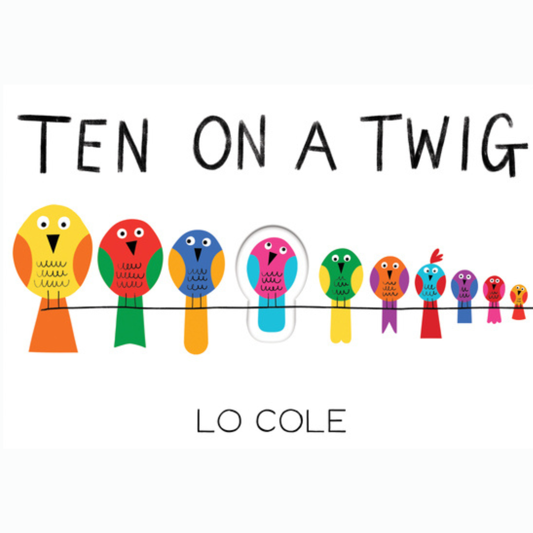 The last and perhaps one the best is Ten on a Twig by Lo Cole, a beautiful engaging interactive picture book for children to learn how to count as they watch birds take pieces of the twig with them as they fall when the book pages are turned for interested little hands. The charming die-cut pages of different sizes complete with tactile and repetitive phrases present counting in descending order and introduce subtraction in an unusual way. Turning the pages is one of the best parts of reading this book.