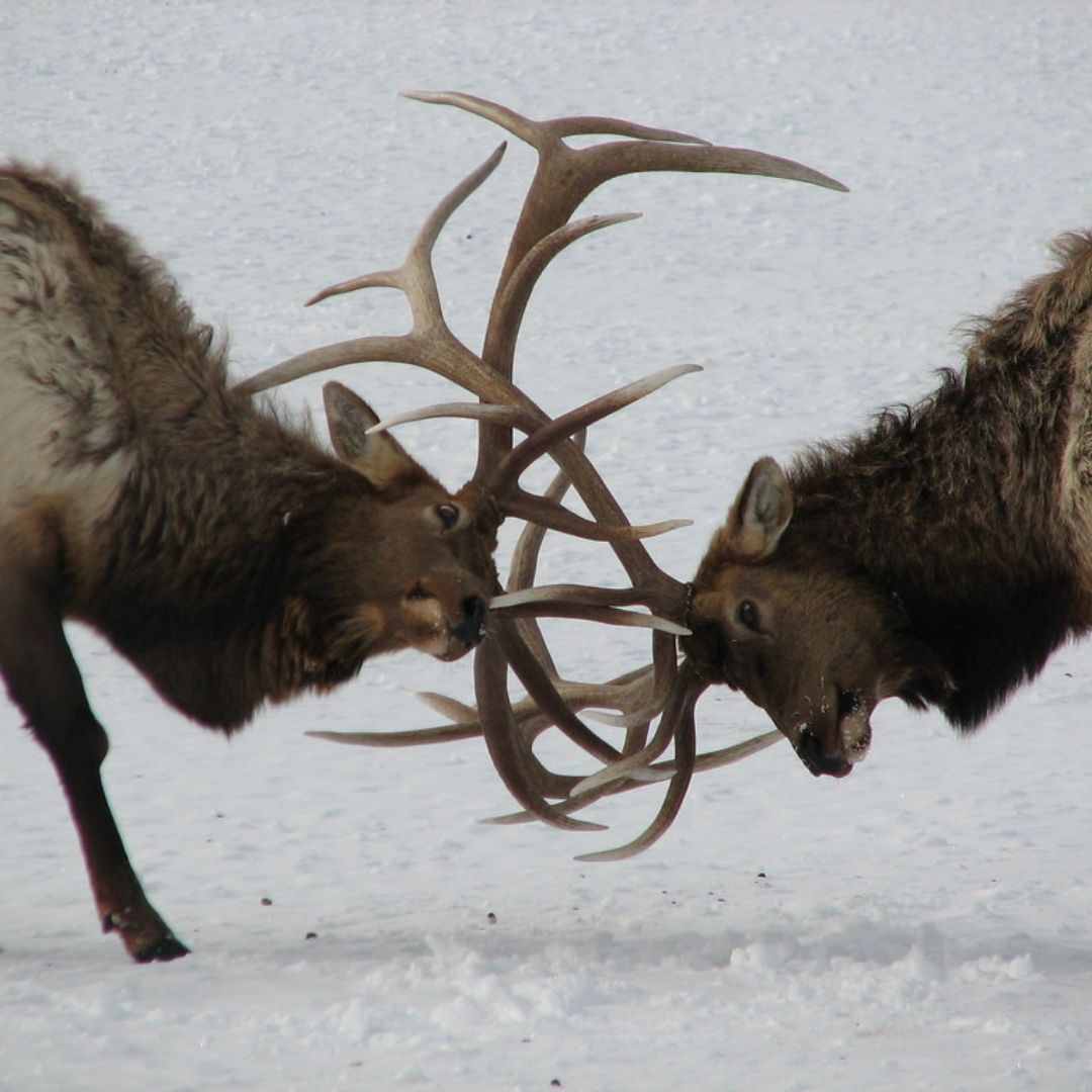 Horns and antlers have different structures, but they also have different uses in an animal’s life. Horns are permanent throughout the animal’s life and are used not only in dominance displays between males but also as a battering ram against predators. Antlers are grown and shed seasonally, largely for the purpose of competition for the attention of females. So while a bull elk’s headgear may look impressive to his ladies, they do not serve as a very good way to protect him against predators. In fact, antlers not only weigh the elk down, but make it next to impossible to run into a more forested, protected area if being chased by a predator. The branching structure of a big set of antlers makes it much easier for them to become entangled in low-hanging branches. This is a big reason that antlered animals only have their antlers for a short period of time!
