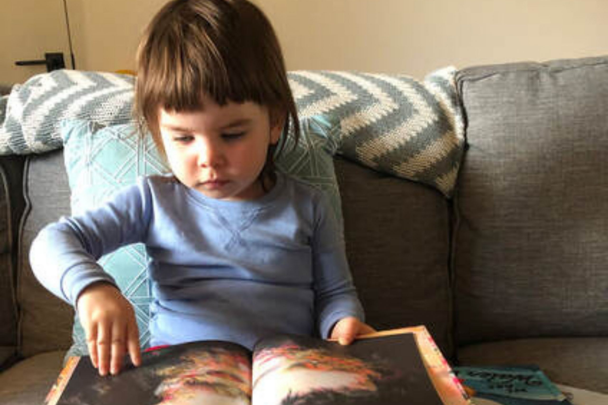 From the moment you open this book, be prepared for your heart to expand with joy. The apples of a child’s cheek mirror an apple radiant on a tree. Apple becomes fruit pie. Pie is eaten by children in all their joy. You might even feel it glowing inside your heart. You might see it stirring in another’s eyes. Bright pink fruit and flowers, a striking yellow sun and deep black trees are swept suddenly away by a wash of bright blue rain. Luyken’s book is a poem. Her theme is connection. It is, perhaps, the perfect book for a toddler who loves to ask “Why?” Why is there no light underground, only tree roots? Why is there darkness in the forest and light outside it? The book lends itself to explore and expand thinking. Why are the apples of our cheeks lit up from the inside? At the end, you know it is because the main character sees and is seen by others. What a beautiful gift to offer to your child and to yourself!