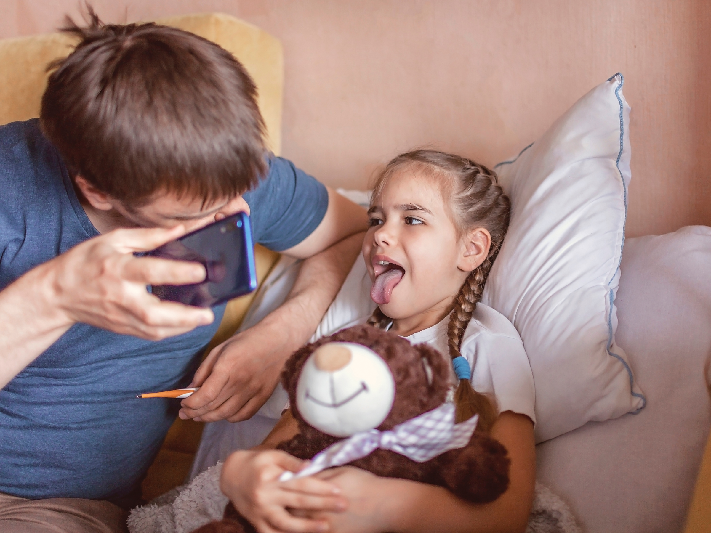 Many visits work well for pediatric telemedicine, such as asthma, allergies, colds and flu, COVID, vomiting, diarrhea, rashes, fever, earache, headache, sore throat, pink eye, urinary tract infection, breastfeeding difficulties, and newborn general questions and concerns.