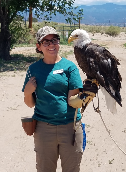 Raelynn Archuleta was born and raised in a small ranching community in Northern New Mexico and graduated with a Bachelor of Science in Fish and Wildlife Conservation Ecology from New Mexico State University (NMSU) in 2021. During her time at NMSU, she assisted with field research on Penasco’s smallest species of chipmunk (the Organ Mountains chipmunk), black bears, and trout species. She started volunteering at New Mexico Wildlife Center (NMWC) in early 2022 and became an education intern soon after. She is now a full-time staff member taking care of the 30+ Ambassador Animals at NMWC and helping to educate our visitors about the amazing diversity of wildlife in her home state.
